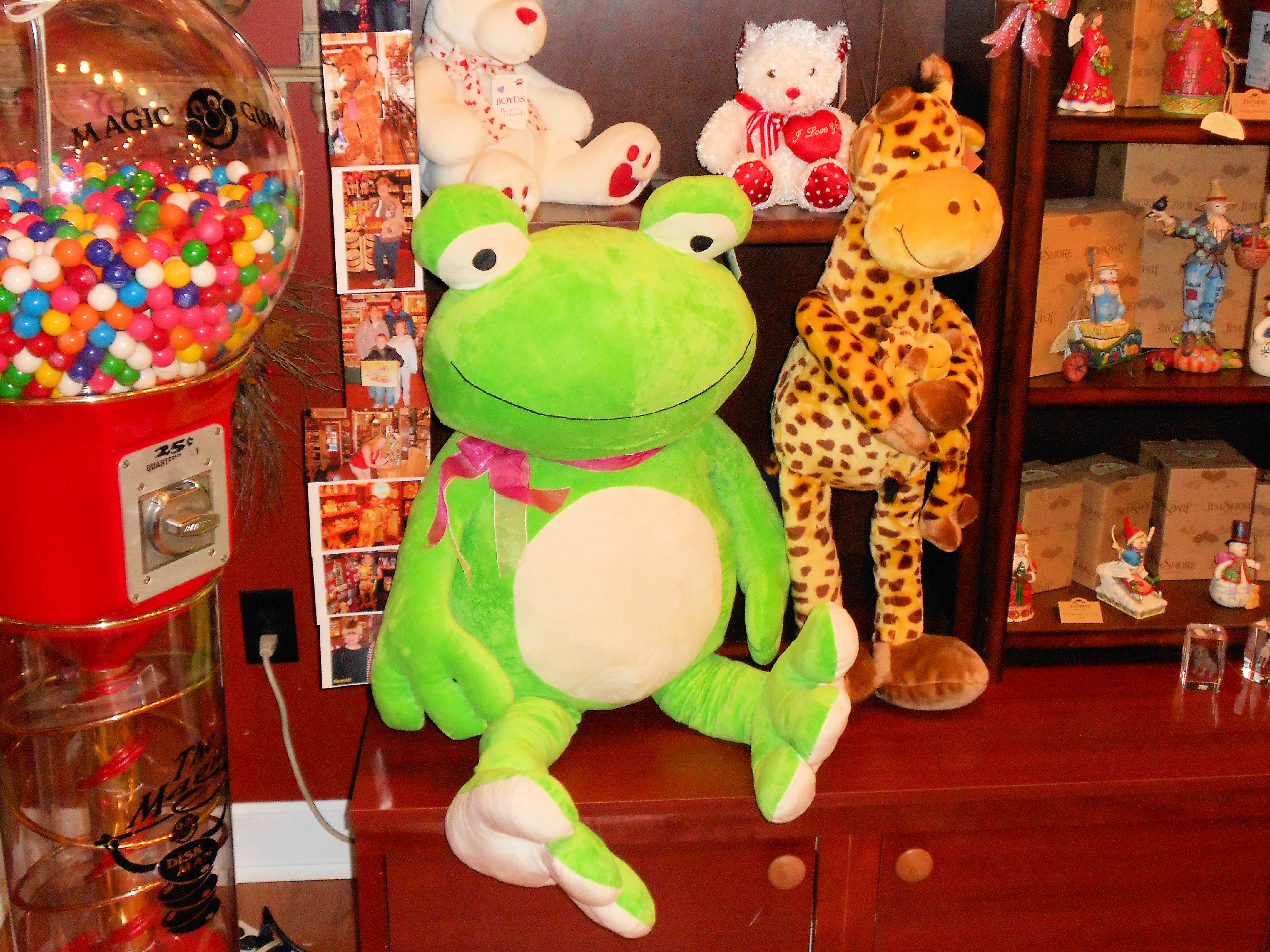 It’s March, what can I say….March is March! On a brighter note, We have TWO NEW BIG STUFFED ANIMALS….A Gigantic Handsome Frog and A Momma Giraffe just waiting for some lucky person to win!  So how do you take a chance to win?  Somewhere among all the gumballs in the gumball machine (pictured), lie two winning gumballs; one for the FROG and one for the GIRAFFE.  25¢ gets you a gumball, and who knows, it may just get you one of the winning gumballs instead!! As an added bonus this year, we have included 10 GUMBALLS with the word “WIN” on it. Get one of those gumballs and you win a $5.00 gift certificate for anything in the store. Hope to see you soon and oh yea.. March is nearly over…..WHEW!!!