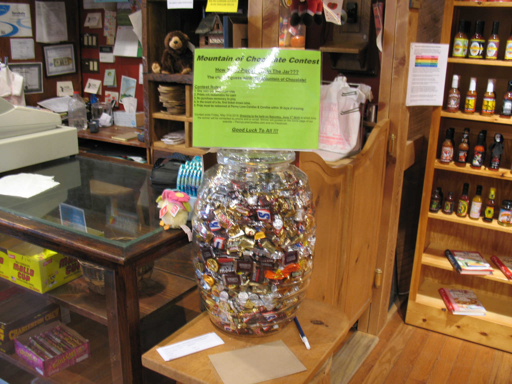 Ok Folks, the moment you’ve all been waiting for. So how many pieces of chocolate in that GIGANTIC jar? The answer is 1,248. There were 2 people that had guessed 1,250 and the first ticket drawn was Tara K. from a Paoli, PA. Tara was contacted and given the good news. Congratulations and nice going Tara! The other contestant that also had the 1,250 guess, but was drawn after Tara, was Alissa M., a local Gal, right here from Hawley PA. Nice going Alissa! Please stop by the store, we would like to give you a pound of candy from our bins as a consolation prize.